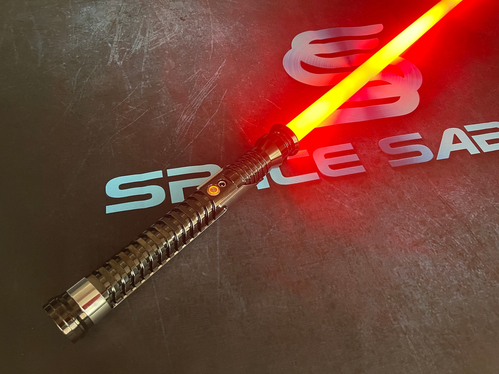 The Lightsaber of Qui-Gon Jinn The lightsaber of Qui-Gon Jinn was created long before Episode I The two-toned alloy metal hilt is black and silver in color The hilt has a black ridged handgrip made of alloy and holds micro-power cells that allow.